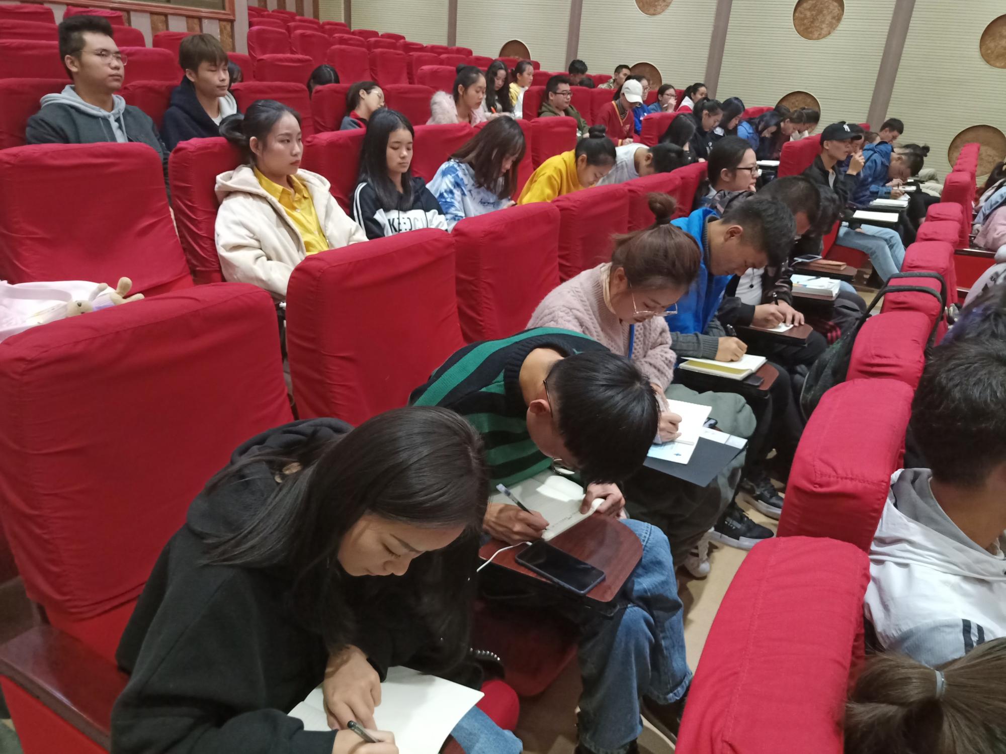 典礼结束后,涂仁明开始进行《团的知识》专题讲座,他为参训学员讲述了入团的程序、团的章程和规范团员管理、落实好“三会两制一课”制度等团务核心内容,围绕团的理论知识展开了深入的讲解,并积极与大家展开交流讨论,学员们积极发言,讲座氛围轻松和谐,让同学们进一步了解和掌握了共青团的基础知识及团的光荣历程。