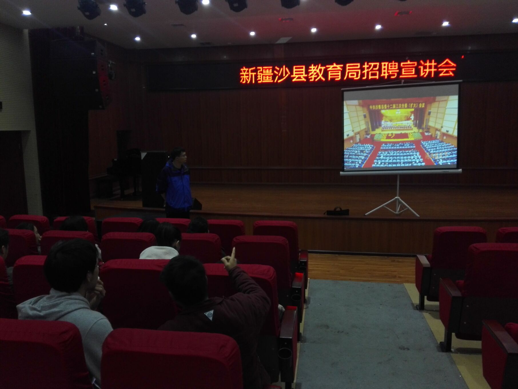 4月3日下午,新疆沙雅县(沙县)教育局招聘宣讲会在威廉希尔中文官方网站六楼音乐厅顺利举行,此次招聘宣讲会的主讲人是雅县教育局的代表王老师,2019届毕业生参加了此次招聘会。