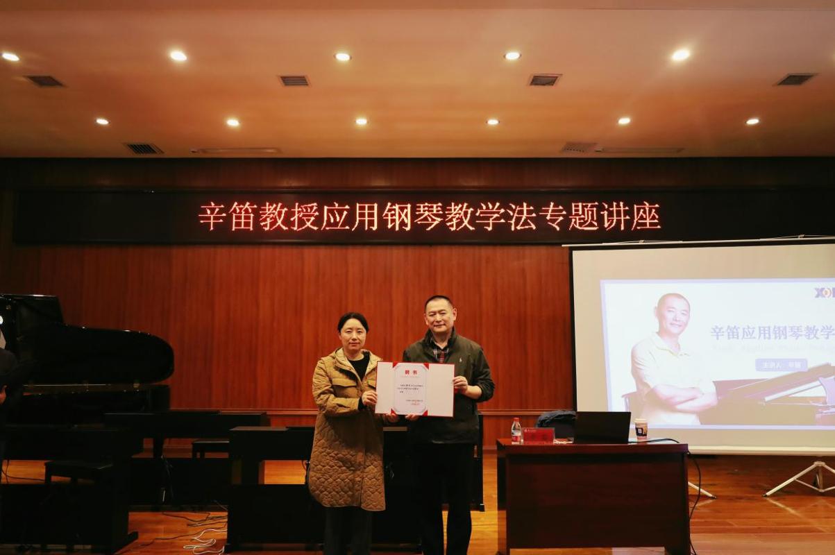 鉴于辛笛教授在应用钢琴教学领域深耕多年所取得的卓越成就与深厚造诣,为进一步加强学院师资力量、推动音乐教育教学改革,Williamhill威廉希尔正式聘任其为客座教授。讲座伊始,威廉希尔中文官方网站党委书记李佩为辛笛教授颁发聘书,全场响起热烈掌声,见证这一助力学院发展的重要时刻。