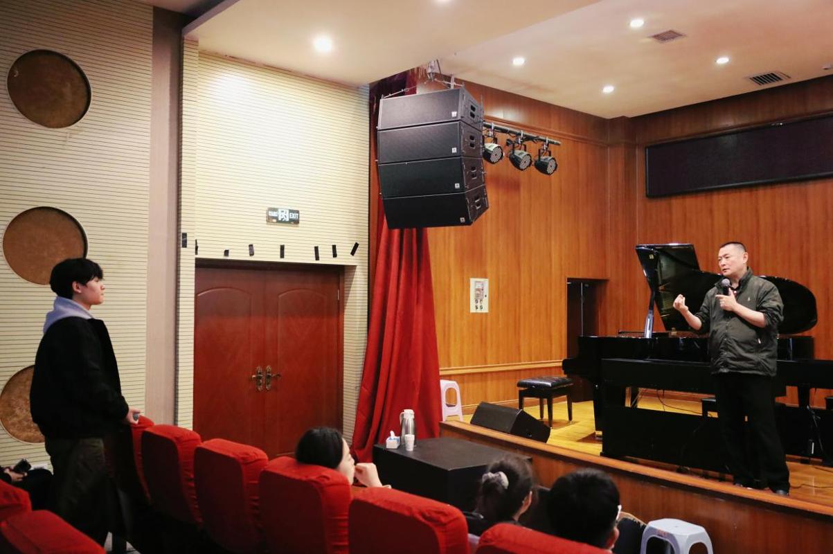 此外,辛笛教授还分享了模块化教材体系的构建思路与集体课教学的实用技巧,为一线教师的教学实践提供了宝贵借鉴。在随后的问答环节,同学们热情高涨、踊跃提问,围绕电子钢琴教学实践、和声知识运用、中小学音乐课堂应用等专业问题向教授请教。辛笛教授耐心倾听每一个问题,结合自身丰富的教学经验进行深入细致的解答,不仅针对性地回应了师生们在学习与教学中的困惑,更进一步深化了大家对钢琴艺术及应用教学的理解与思考。